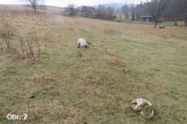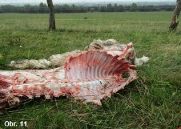 Při ohledání je vhodné pořídit celkový snímek místa napadení (např. Obr. 1, 2), snímek kořisti (např. Obr. 7 a 9), detaily napadení a rozsah jednotlivých poranění (např. Obr. 3-6, 11), pokud možno s měřítkem nebo předmětem známé velikosti, aby při dalším šetření bylo jasné, jak je daná věc na fotografii velká.