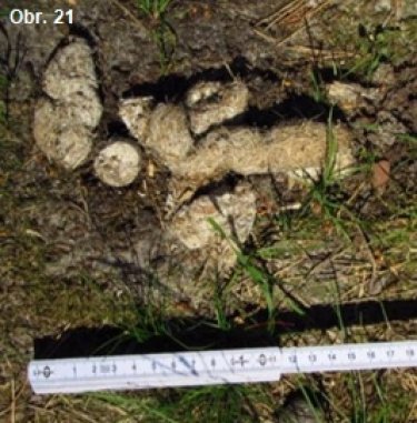 ➔ starší trus - uložíme do 2 igelitových sáčků a popíšeme.
