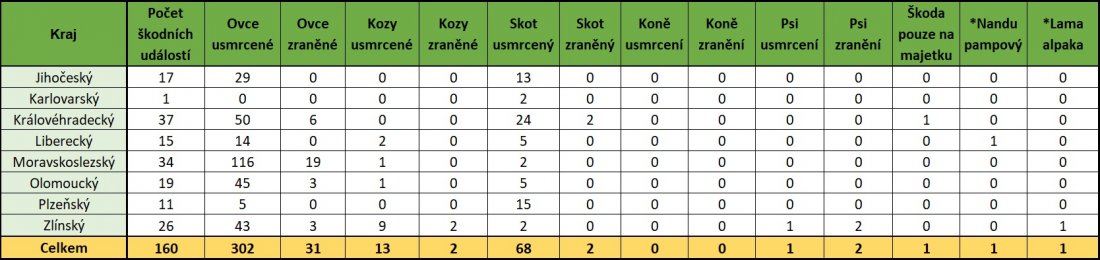 Místa škod vlkem na hospodářských zvířatech včetně údajů o škodě zobrazujeme nově na interaktivní mapě zde.